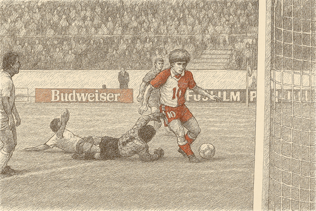 For næsten 40 år siden, kunne man høre disse legendariske ord på TV. ”Og så skyder han. Nej, han venter. Jaaaa, Michael Laudrup. Det er genialt, dét der”.